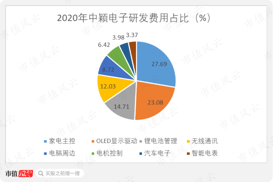 截至2020年底,中颖电子共发生研发投入1.73亿,其中,家电主控和OLED显示驱动是前两大研发投入方向,分别投入4,784万、3,988万。