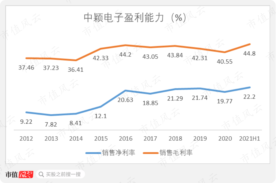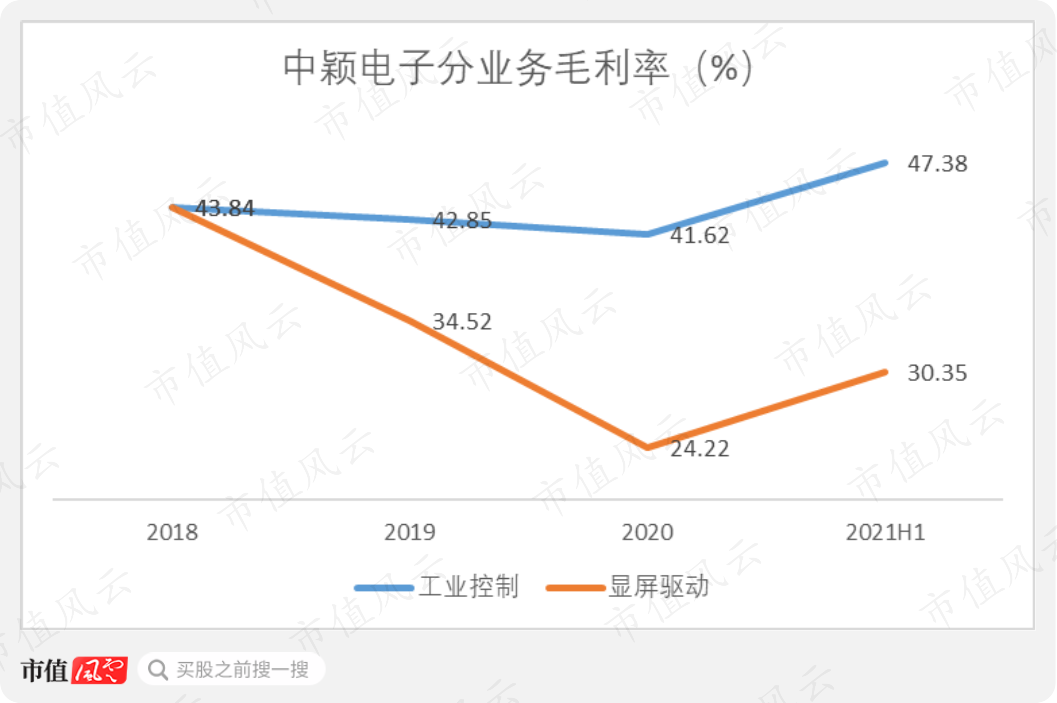 而且,工业控制业务作为中颖电子的核心业务,毛利率稳定在40%以上,截至2021年6月底,该业务毛利率上升至47.38%。