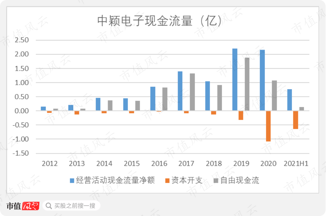 受轻资产模式影响,公司用于构建固定资产等的资本开支并不高,加之造血能力逐年提升,中颖电子上市以来,连续9年自由现金流为正。