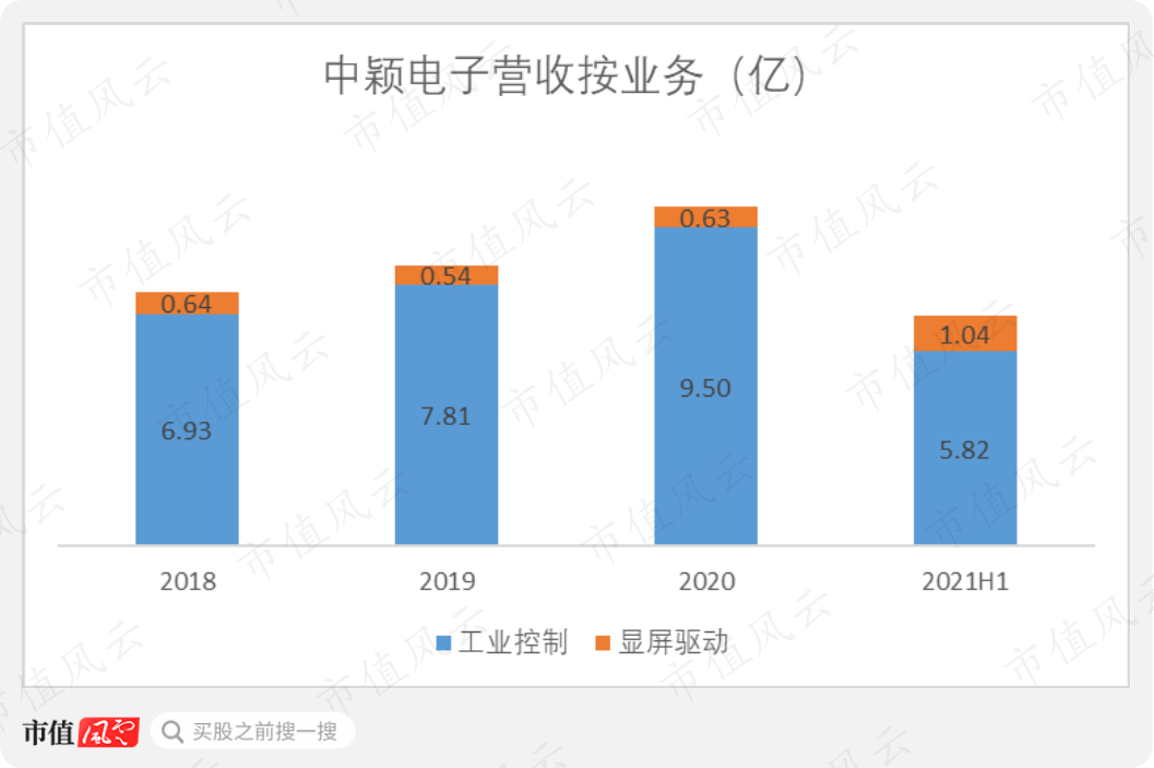 2021年上半年,中颖电子的屏显驱动业务实现营收1.04亿,毛利率为30.35%。