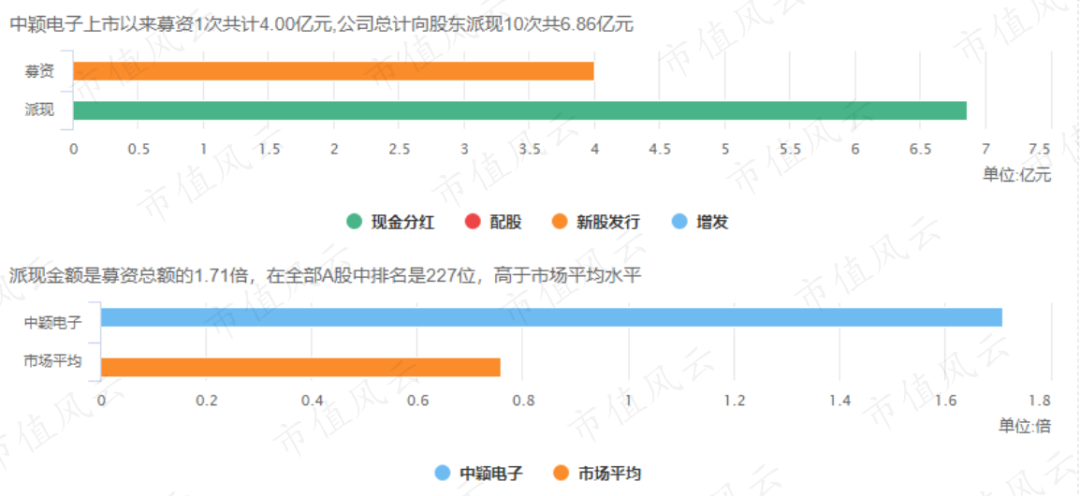 自2012年上市至今,9年间,中颖电子仅通过IPO募资4亿,同时累计分红6.86亿,募资派现比达到1.71。