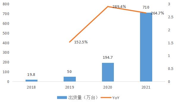 而折叠屏手机作为融合多种先进技术的创新机型近年来出货量持续扩大。根据IDC数据,2021年全球折叠屏手机出货量达710万台,较2020年的194.7万台同比增长264.7%,渗透率由0.15%提升至0.5%。