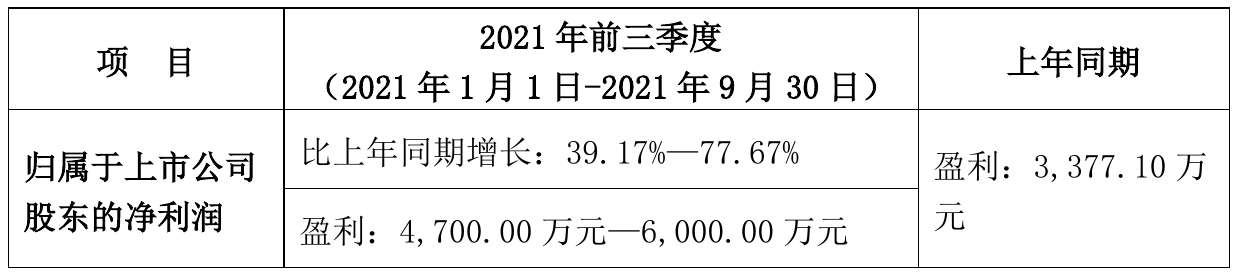 挖贝网10月15日,苏大维格(300331)近日发布2021年前三季度业绩预告公告,预计2021年前三季度实现归属于上市公司股东的净利润为4700.00万元–6000.00万元,比上年同期增加39.17%–77.67%。