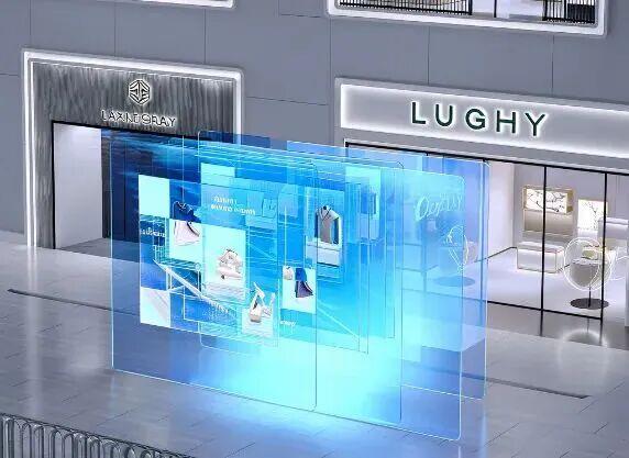 沉浸式商业橱窗,消费者站在屏幕前,即可穿戴、穿搭商品,实现营销方式的互动化、游戏化。