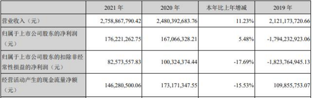 润和软件2021年年报显示,报告期内,公司实现营收27.59亿元,同比增长11.23%,归属于上市公司股东的净利润1.76亿元,同比增长5.48%,归属于上市公司股东的扣除非经常性损益的净利润8257.36万元,同比减少17.69%,经营活动产生的现金流量净额1.46亿元,同比减少15.53%。