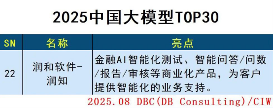 润和软件“润知”知识处理大模型荣登“2025中国大模型TOP30”榜单