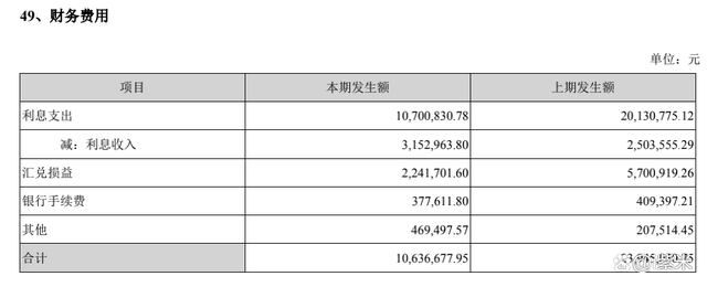 年报显示,公司财务费用为1063.67万元。去年同期为2394.51万元。其中,利息支出为1070.08万元,利息收入315.3万元,汇兑损益为224.17万元。