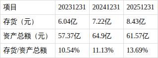 ?存货/资产总额比值持续增长。近三期年报,存货/资产总额比值分别为10.54%、11.13%、13.69%,持续增长。