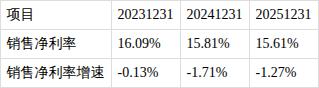 ?销售净利率持续下降。近三期年报,销售净利率分别为16.09%,15.81%,15.61%,变动趋势持续下降。