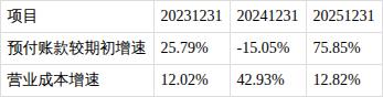 ?预付账款增速高于营业成本增速。报告期内,预付账款较期初增长75.85%,营业成本同比增长12.82%,预付账款增速高于营业成本增速。