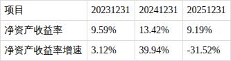 ?净资产收益率较大幅下降。报告期内,加权平均净资产收益率为9.19%,同比大幅下降31.52%。