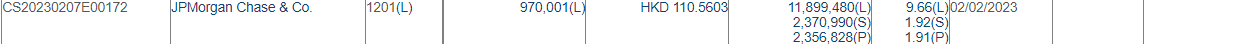 减持后,JPMorgan Chase & Co.最新持好仓数目为1189.948万股,持好仓比例由10.45%下降至9.66%。