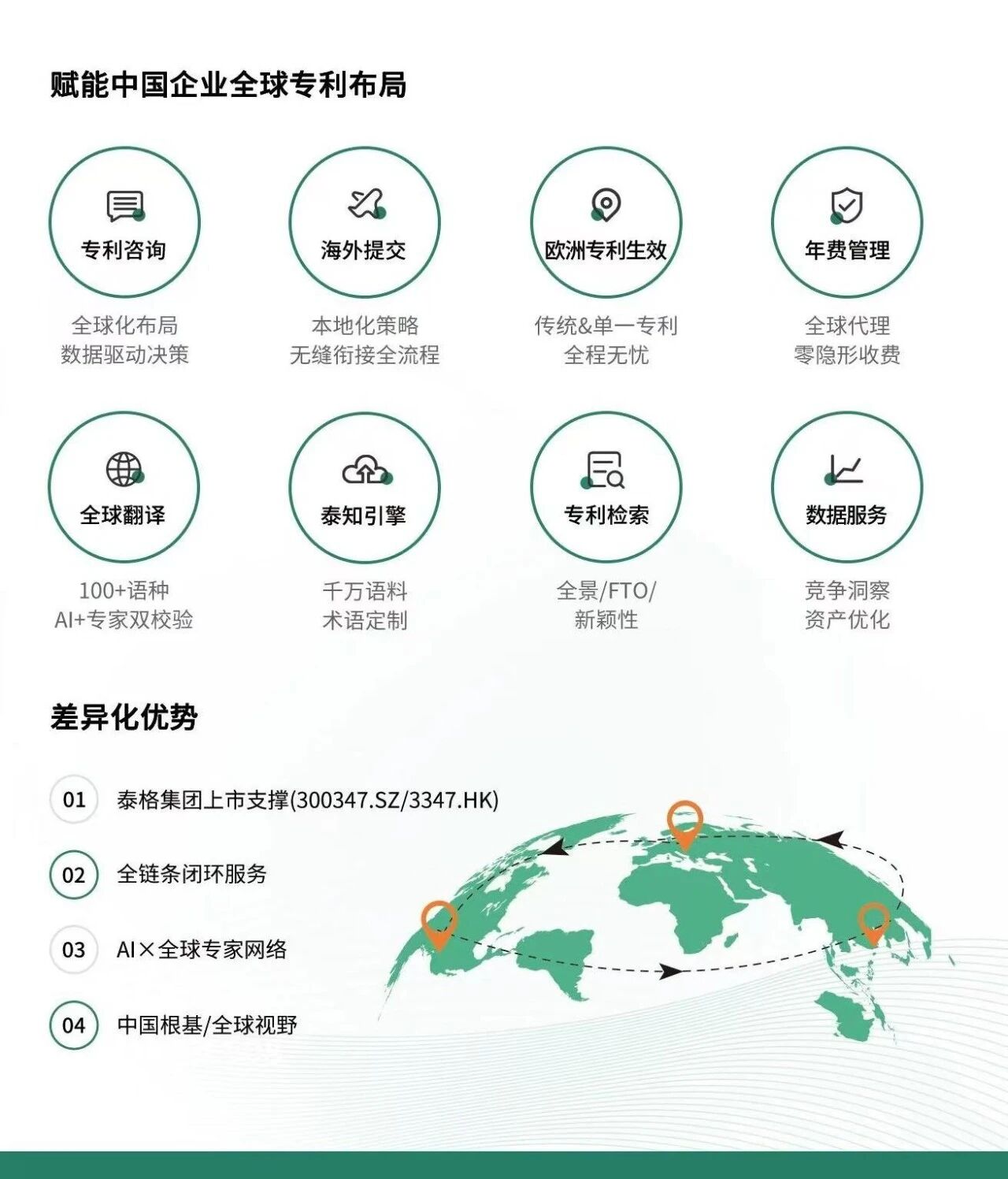 泰知雅信为泰格集团(股票代码:300347.SZ/3347.HK)旗下全球知识产权创新解决方案专家,致力于为全球创新企业提供一站式全球专利布局与风险管理服务。依托专业翻译、数据智能与全球资源能力,泰知雅信打造覆盖知识产权全生命周期的闭环服务体系,助力企业降低海外知识产权风险、提升专利资产价值。共同构建支撑中国生物医药企业全球化发展的核心竞争力与可持续护城河。