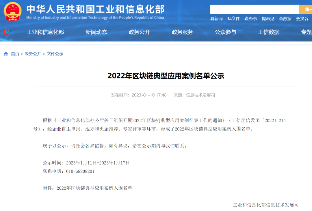 近日,工信部对外发布了《2022年区块链典型应用案例名单公示》。由北信源参与建设的邹平区块链生态环境监管平台,经评议成功入选2022年区块链典型应用案例,同入选的还有中国移动、中国联通、中国电信、国家电网、支付宝等单位案例。