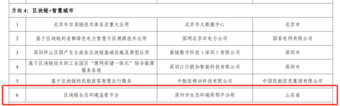 据了解,本次区块链典型应用案例征集吸引了全国各大省市的优秀区块链项目纷纷参与。经层层考核,61个具有较高技术水平、较强代表性、较强借鉴意义和推广价值的区块链项目脱颖而出。其中,北信源参与建设的邹平区块链生态环境监管平台成功入选“区块链+智慧城市”仅有的六个典型案例之一。