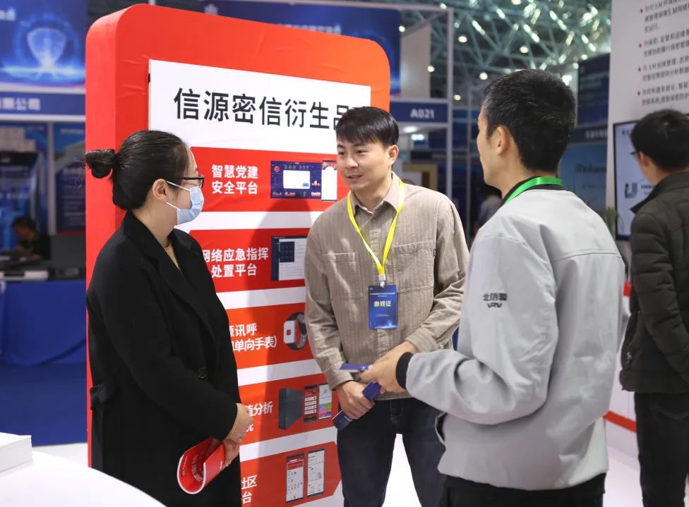 作为中国信息安全领域龙头企业,北信源自成立之初始终秉承“为中国的数字化腾飞保驾护航”的企业使命,以技术创新为立身之本,深度布局终端安全、数据安全、工控安全等领域。此次展会,北信源也带来了深耕行业27年来的优秀技术成果。包括公司战略级产品“信源密信”高安全即时通信平台?底座及其衍生应用、相关套件管理系统、计算机终端保密检查系统、北斗定位算法的区块链机等创新技术和成果悉数亮相,以科技+生态,助力安全生态体系建设。吸引了众多参展嘉宾、行业代表及有关领导的关注、咨询探讨。