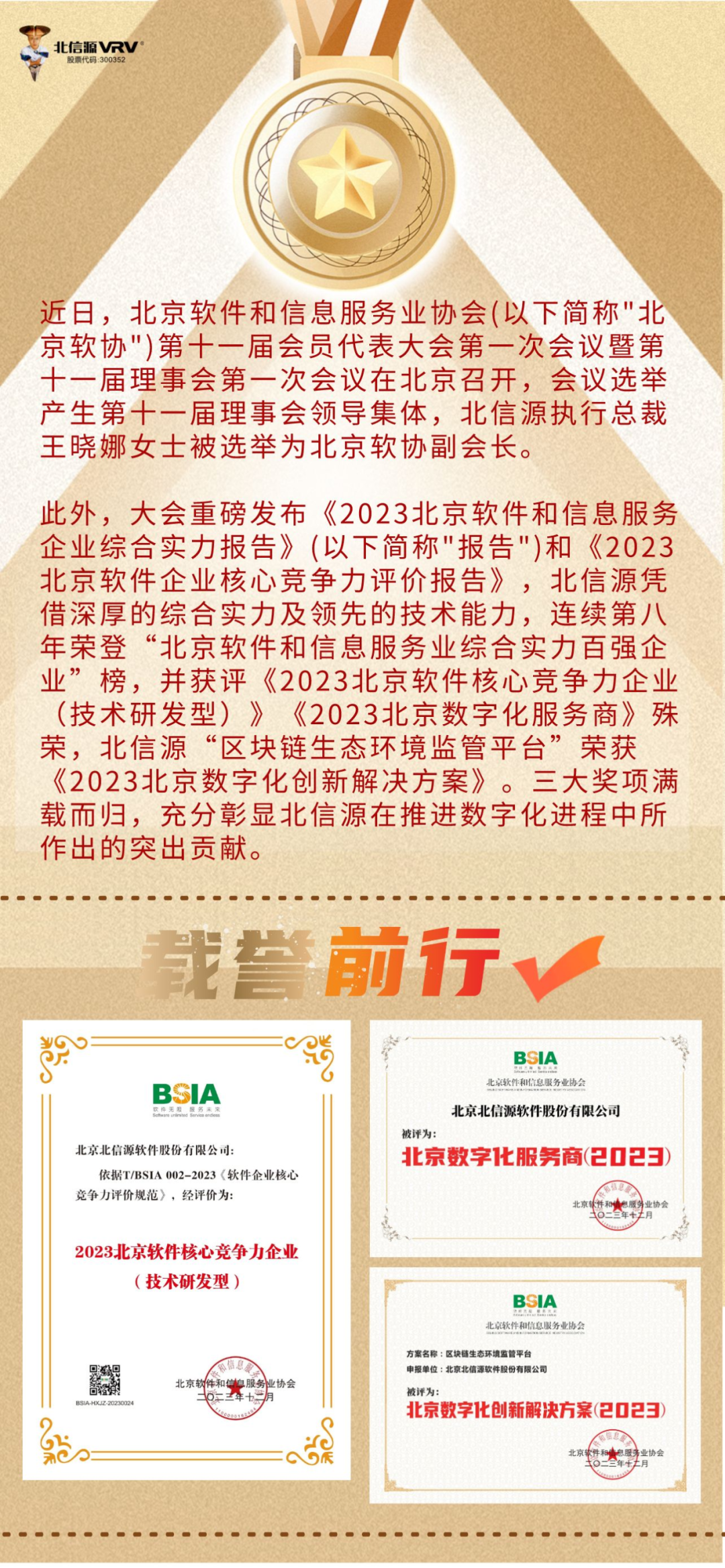 深耕不辍,载誉前行。每一份荣誉都是我们奋勇前行的新起点、新动力。作为北京软协副会长单位,北信源一直致力于推动软件和信息技术服务行业的发展,积极参与行业交流与合作。未来,北信源将继续以科技创新为使命,以守护国家安全为己任,拥抱数字经济浪潮,持续发挥行业创新示范作用,在赋能千行百业数字化转型、促进我国数字经济高质量发展的征程中做出更大贡献。