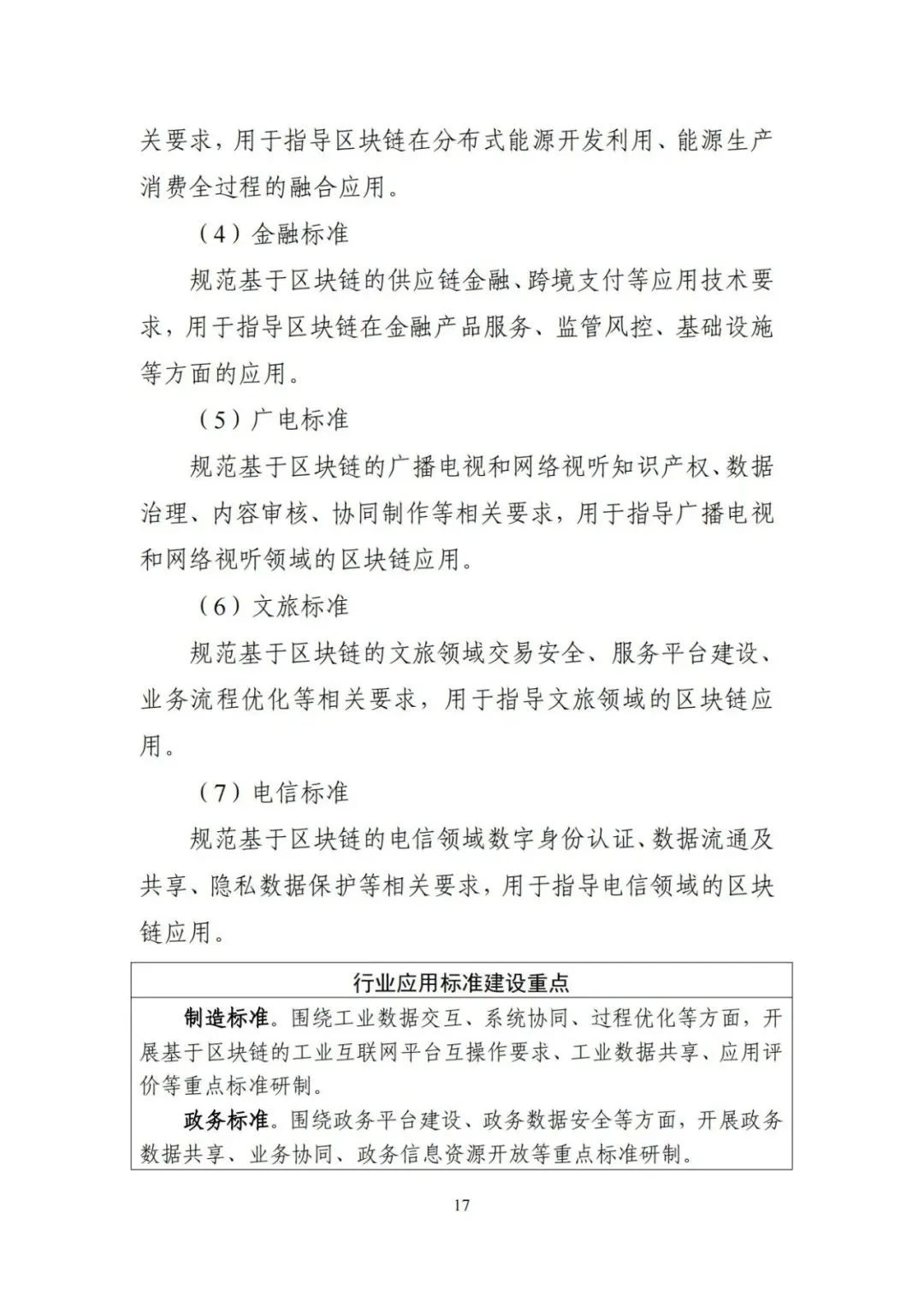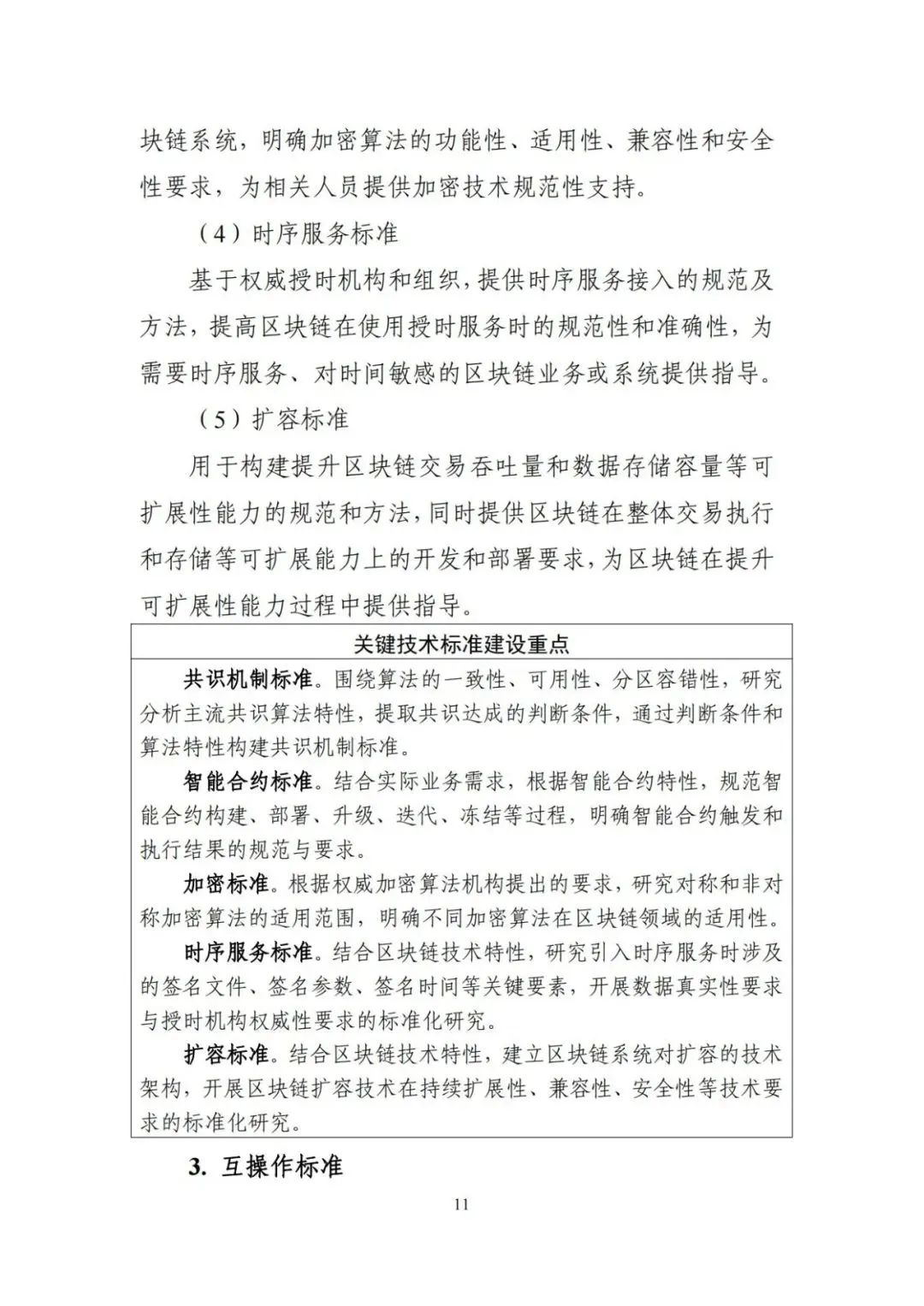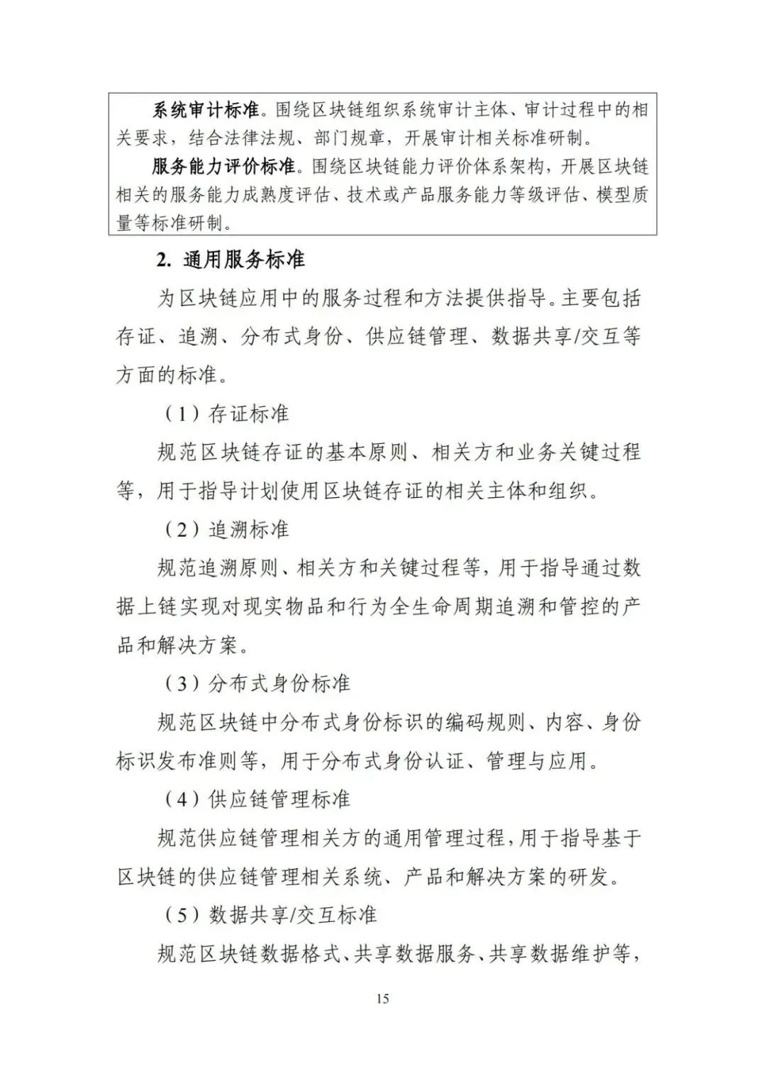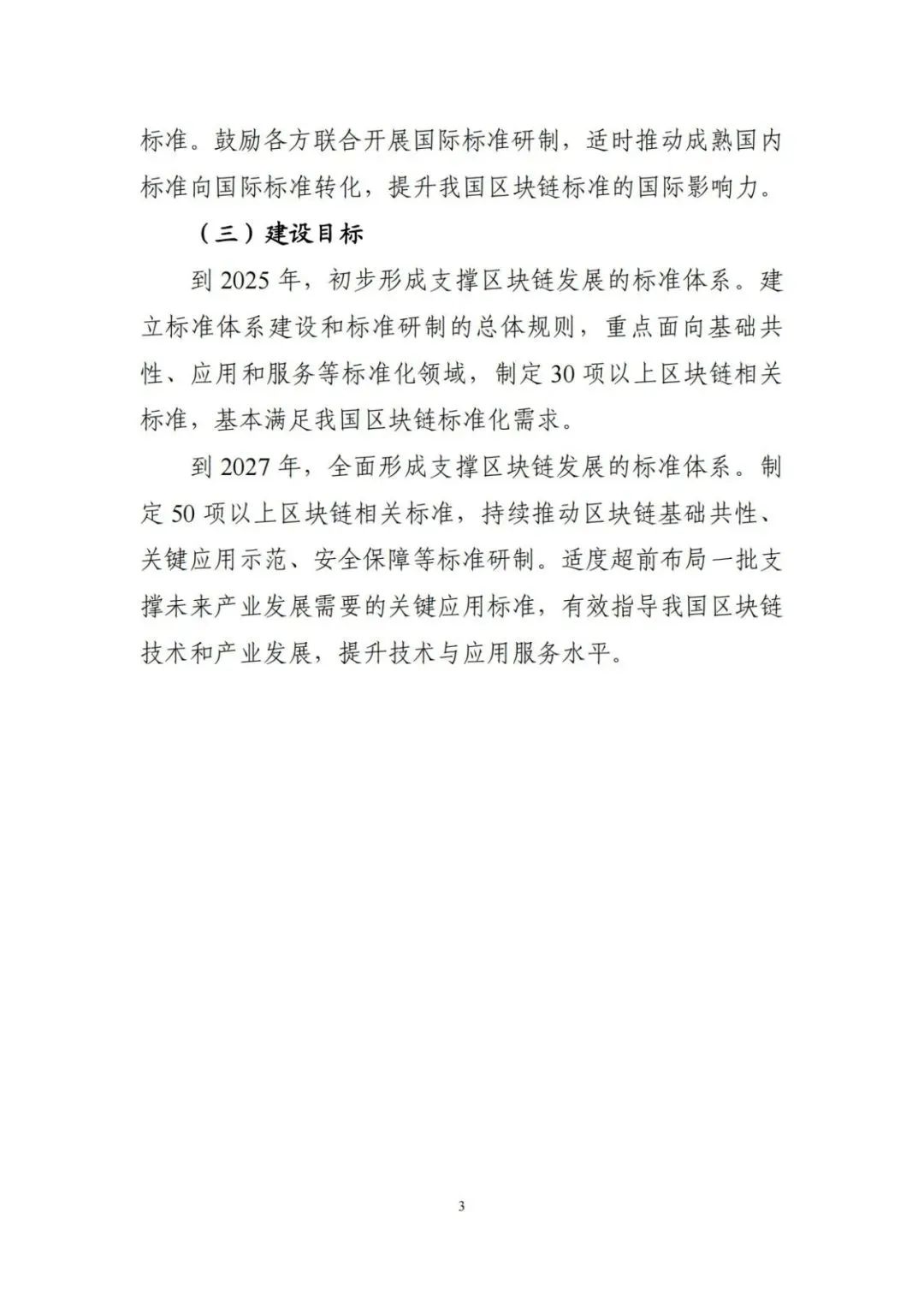 指南提出,到2025年,初步形成支撑区块链发展的标准体系。重点面向基础共性、应用和服务等标准化领域,制定30项以上区块链相关标准,基本满足我国区块链标准化需求。到2027年,全面形成支撑区块链发展的标准体系。制定50项以上区块链相关标准,持续推动区块链基础共性、关键应用示范、安全保障等标准研制。