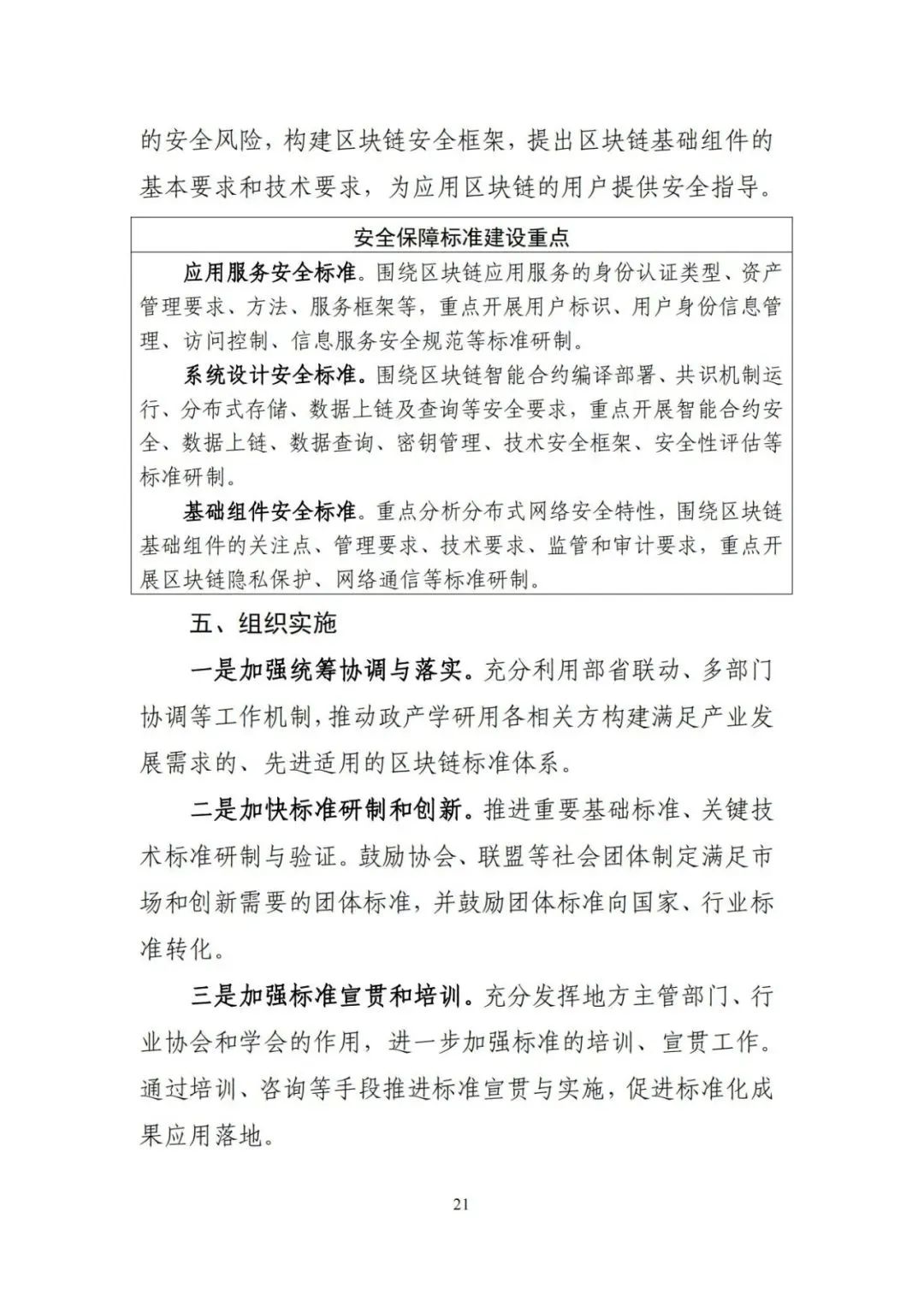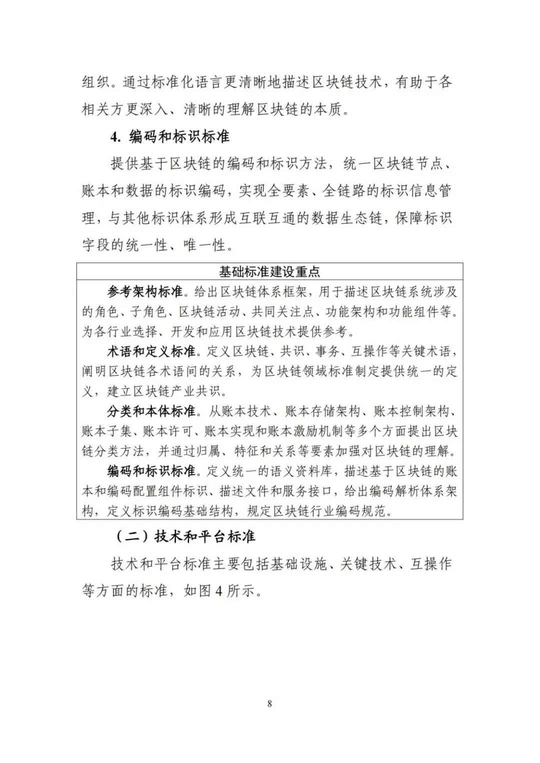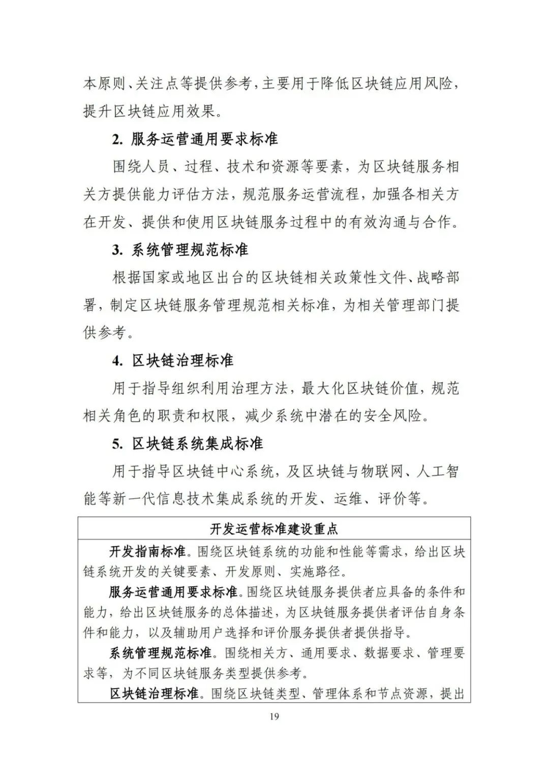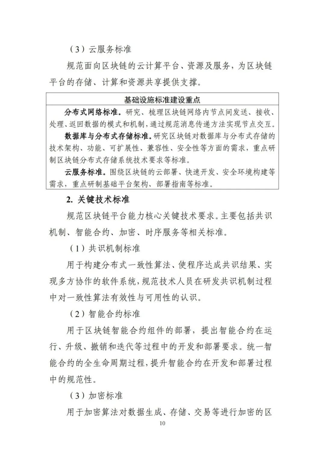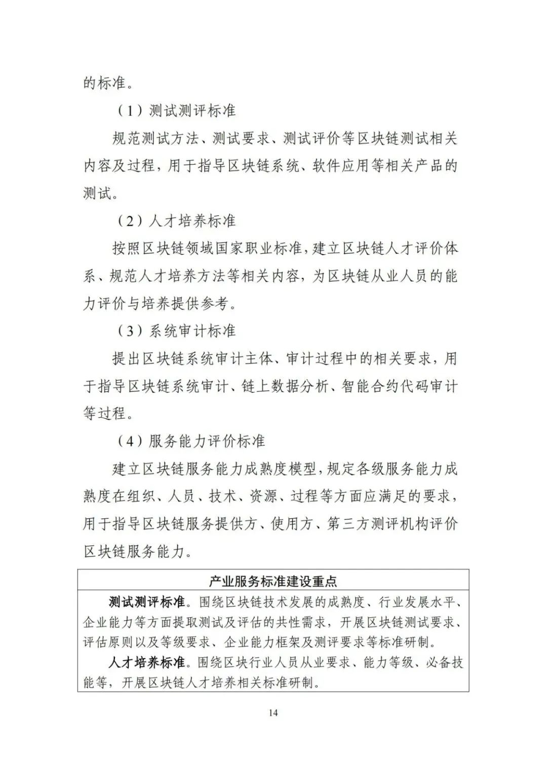 指南提出,到2025年,初步形成支撑区块链发展的标准体系。重点面向基础共性、应用和服务等标准化领域,制定30项以上区块链相关标准,基本满足我国区块链标准化需求。到2027年,全面形成支撑区块链发展的标准体系。制定50项以上区块链相关标准,持续推动区块链基础共性、关键应用示范、安全保障等标准研制。
