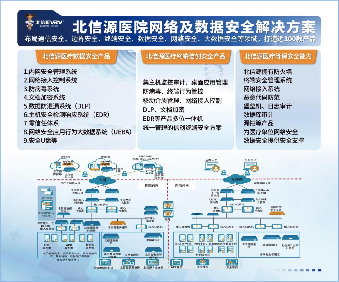 医疗数字化转型是所有医院面对的新时代课题,将重塑医院运营体系。而在数字化过程中,网络安全的保护必不可少。作为国内信息安全行业首批A股上市企业之一,北信源凭借28年的深厚技术积累和丰富的行业经验,为医疗机构构建了一个多层次、全方位的安全防护体系,成为数字化转型中不可或缺的安全守护者。目前在国家中医药管理局、国家药品监督管理局、中华人民共和国国家卫生健康委员会、国家疾病预防控制局等重要单位,以及北京协和医院、中国人民解放军总医院、中国医学科学院阜外医院、北京大学第一医院、首都医科大学等国内知名医院均有广泛应用,服务的医疗行业用户超过1000家。