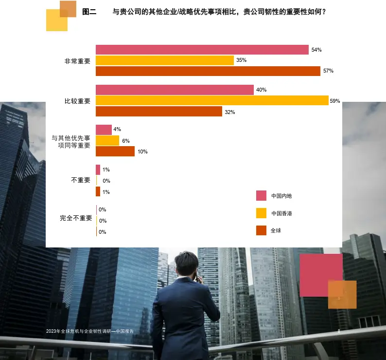 另据《2023年全球危机与企业韧性调研中国报告》显示,超过九成的中国专业人士表示,网络韧性是他们核心的企业战略之一,这高于全球89%的水平。