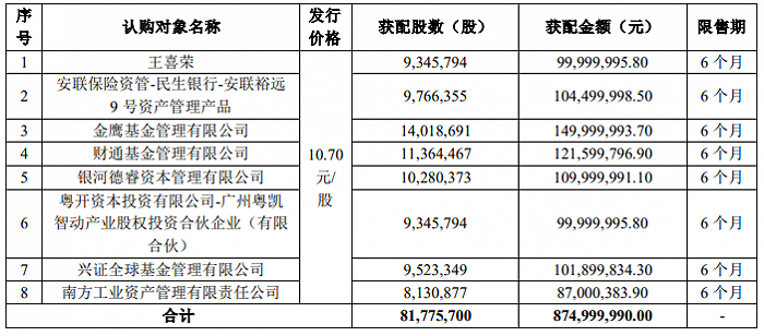 东土科技8月1日发布向特定对象发行股票并在创业板上市发行情况报告书,确定本次发行价格为10.7元/股,发行股数为8177.57万股,募集资金总额约为8.75亿元。本次发行对象最终确定为8名,金鹰基金、银河德睿及兴证全球基金等8家投资者获配