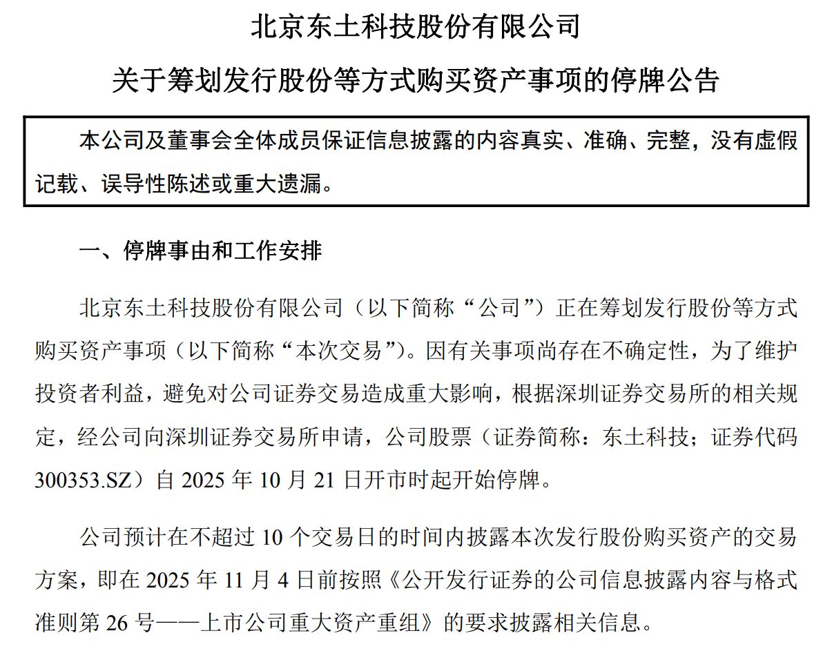 “本次交易对方的范围尚未最终确定,最终确定的交易对方以后续公告的重组预案或重组报告书等上市公司公告披露的信息为准。”东土科技在公告中表示。