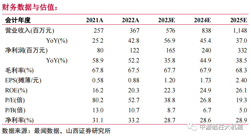 公司披露2022年年度报告:报告期内,公司实现营业收入3.67亿元,同比增长42.81%,实现归母净利润1.22亿元,同比增长52.17%;扣非后归母净利润1.17亿元,同比增长52.36%。业绩基本符合预期。