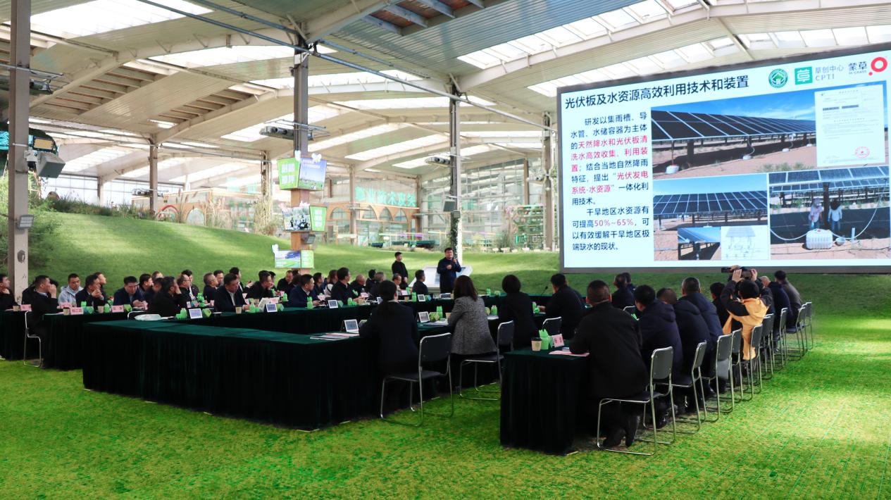 随后,调研考察团和草业技术创新中心、蒙草集团召开座谈会,围绕沙戈荒新能源大基地防沙治沙生态修复建设,“光伏治理+治沙”“风电+治沙”产业发展模式等开展深入交流。蒙草集团防沙治沙技术专家团队分享了“三北”工程生态修复技术产品的研发与应用情况。多年来,蒙草生态以草种科技创新为核心,综合考虑水、土、植被、气候等多要素的协同作用,围绕“种、技、机”产业进行全链条创新,推动沙戈荒生态系统综合治理,探索生产、生活、生态融合的可持续发展新路径。