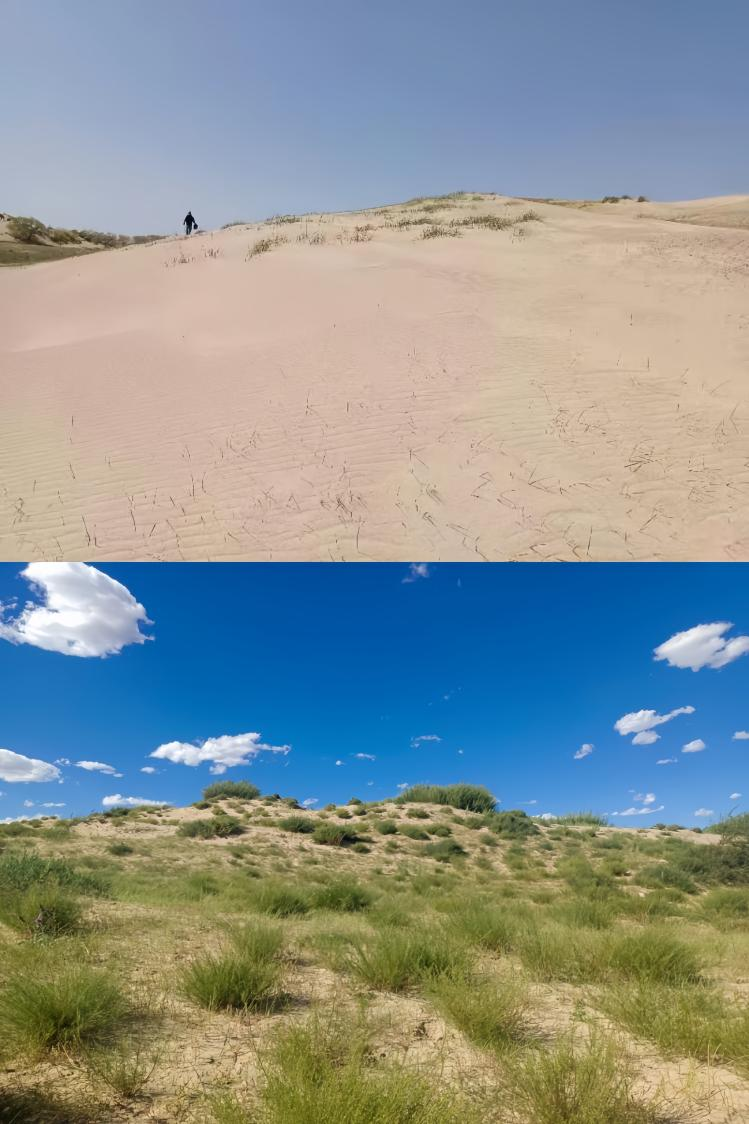 在内蒙古通辽地区应用羊草实施沙地治理前后对比图