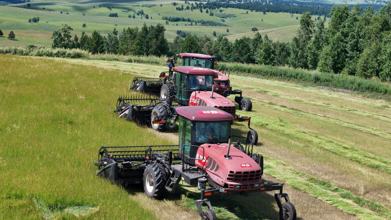 近日,在呼伦贝尔市鄂温克旗,6万亩的羊草迎来首茬收获季。羊草植被盖度、草情长势均高于标准水平,收获的牧草将成为牛羊的营养大餐,生产的种子采用混播形式应用于生态治理可修复种植面积二十倍的土地,经过包衣丸化等技术处理后,制成种子包等创新产品,用于我国北方的沙地治理、草原修复和草种繁育。