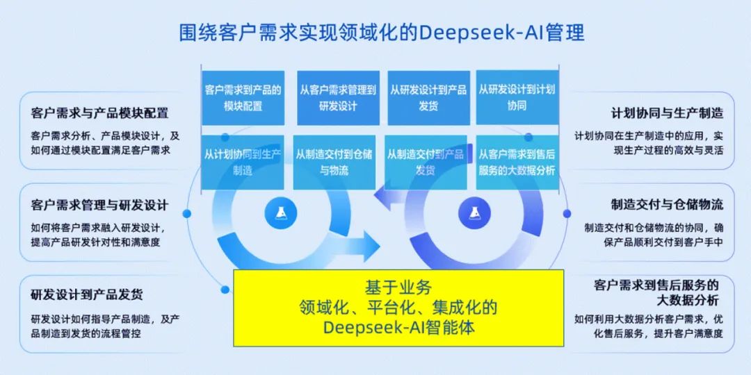 在这一进程中,数字Deepseek-AI智能体在楚天科技系统的接入,将覆盖智能设计、智能生产、智能运维、智能管理、智能服务等全流程,在每一流程环节中将AI智能体布局到具体的应用场景之中。楚天科技在推进AI智能体场景化应用中将形成不断完善的“AI应用导图”,使得Deepseek-AI这一融合了先进人工智能技术的智能体,在楚天科技的垂直应用场景中展现出非凡潜力。以数字Deepseek-AI智能体在楚天科技医药装备智能化生产系统中的应用而言,楚天科技AI应用战略先行阶段聚焦MOM、APS等系统与数字Deepseek-AI智能体的集成,尤其是在MOM(制造运营管理)和APS(高级计划与排程)系统中的深度应用,将推动企业的效率提升和成本优化,最终有效提升用户价值。