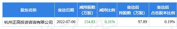 7月6日炬华科技发布公告《炬华科技:关于股东减持计划数量过半的进展公告》,其股东杭州正高投资咨询有限公司于2022年6月28日至2022年7月6日间合计减持154.83万股,占公司目前总股本的0.307%,变动期间该股股价上涨9.12%,截止7月6日收盘报13.64元。