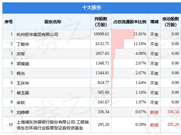 根据炬华科技2022年一季报公布的十大股东详情如下: