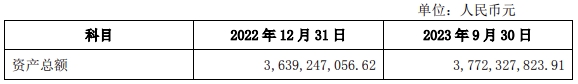 截至2023年9月30日,该业务相关资产和债务的账面净值约1,028,817.90元,以上资产和债务划转审计基准日为2023年9月30日,最终划转的金额以划转实施结果为准。