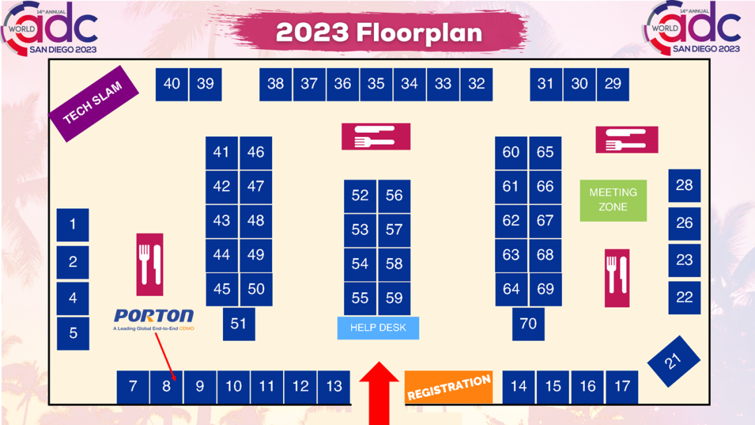 作为ADC领域最大的国际学术会议,第十四届WORLD ADC San Diego 2023(以下简称World ADC 2023)将于2023年10月16-19日(当地时间)在美国圣地亚哥举行,本届大会集中展示国际前沿ADC研发进展和创新突破,邀请了120余位演讲嘉宾、将有超过800多名ADC行业的专家学者参与此次会议。博腾股份多位技术专家和商务团队将亮相本届会议。我们设置的展位如下图,欢迎业内同仁届时与会交流。