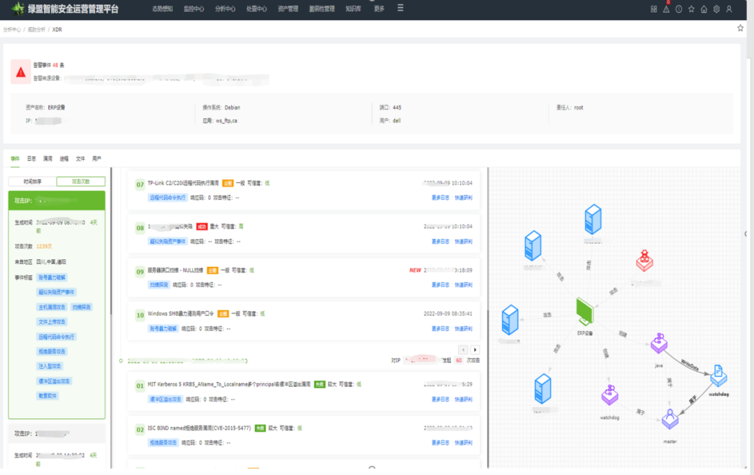 目前,绿盟ISOP平台已积累了几千家成功案例,覆盖政府、运营商、金融、能源、央企、科教文卫等行业,区域覆盖全国各省市级区域,ISOP平台为一系列国家重大活动提供了重要技术保障。绿盟科技持续迭代XDR技术、革新效果。通过大模型的引入进一步推动智能驾驶、人机高效运营的目标达成。