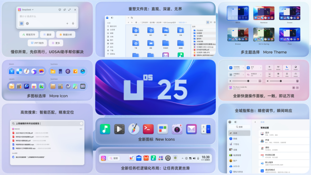统信桌面操作系统V25围绕智慧生产力、高效生产力、可靠生产力进行了深度重构: