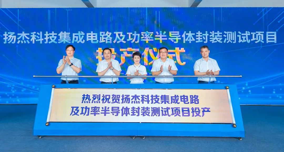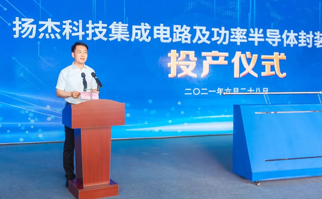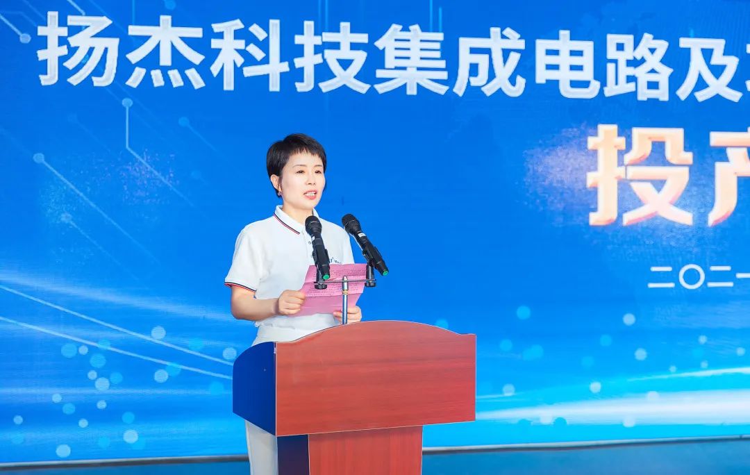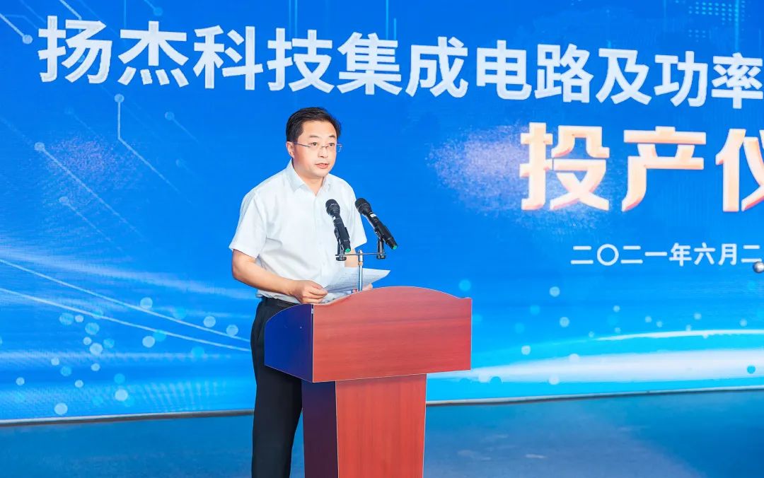 市委常委、常务副市长陈锴竑,区委书记钱峰、市政府副秘书长刘卫清、市工信局局长王正年,扬杰科技董事长梁勤等共同启动投产仪式。