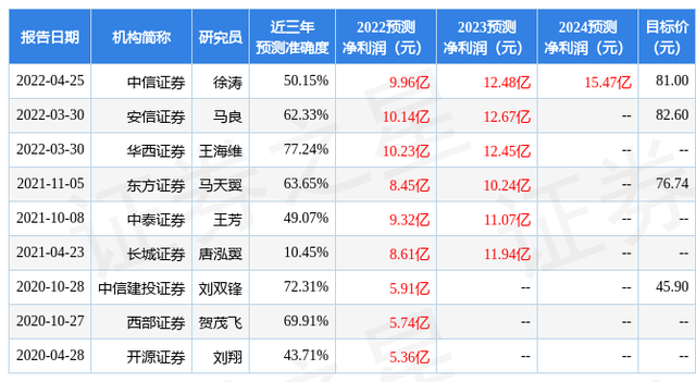 以下是详细的盈利预测信息: