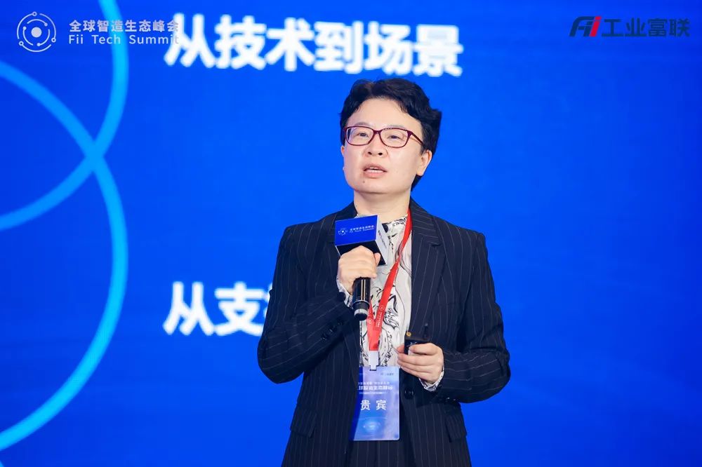 在圆桌对话环节,谢丽霞副总裁与广东赛迪研究院总工程师耿强、工业富联首席数据官刘宗长、腾讯云智能制造总经理梁定安等企学研领域专家代表同台分享,共探新一代信息技术与制造业融合的应用方向。