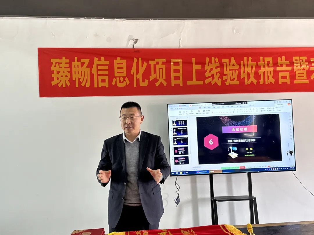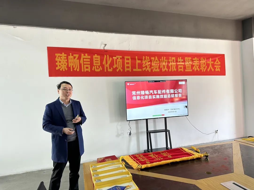项目成功上线离不开每一位成员的辛勤付出,为此,本次大会设置颁奖仪式,由常州臻畅董事长张虹、常州臻畅总经理张伟为项目实施过程中表现优秀的项目成员、团队颁发荣誉奖杯。