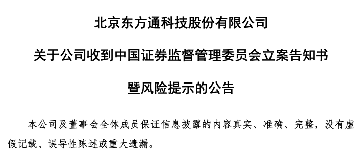 4月14日晚间,东方通(300379.SZ)公告称,公司当日收到证监会下发的《立案告知书》,因公司涉嫌定期报告等财务数据存在虚假记载,根据相关法律法规,证监会决定对公司立案。