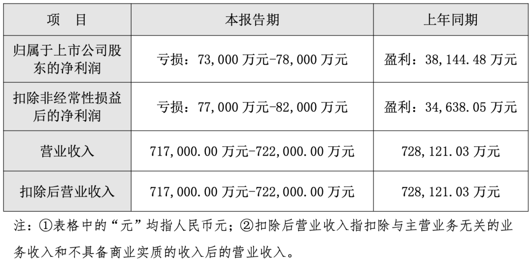 预计亏损 7.3 亿至 7.8 亿;营收 71.7 亿至 72.2 亿。