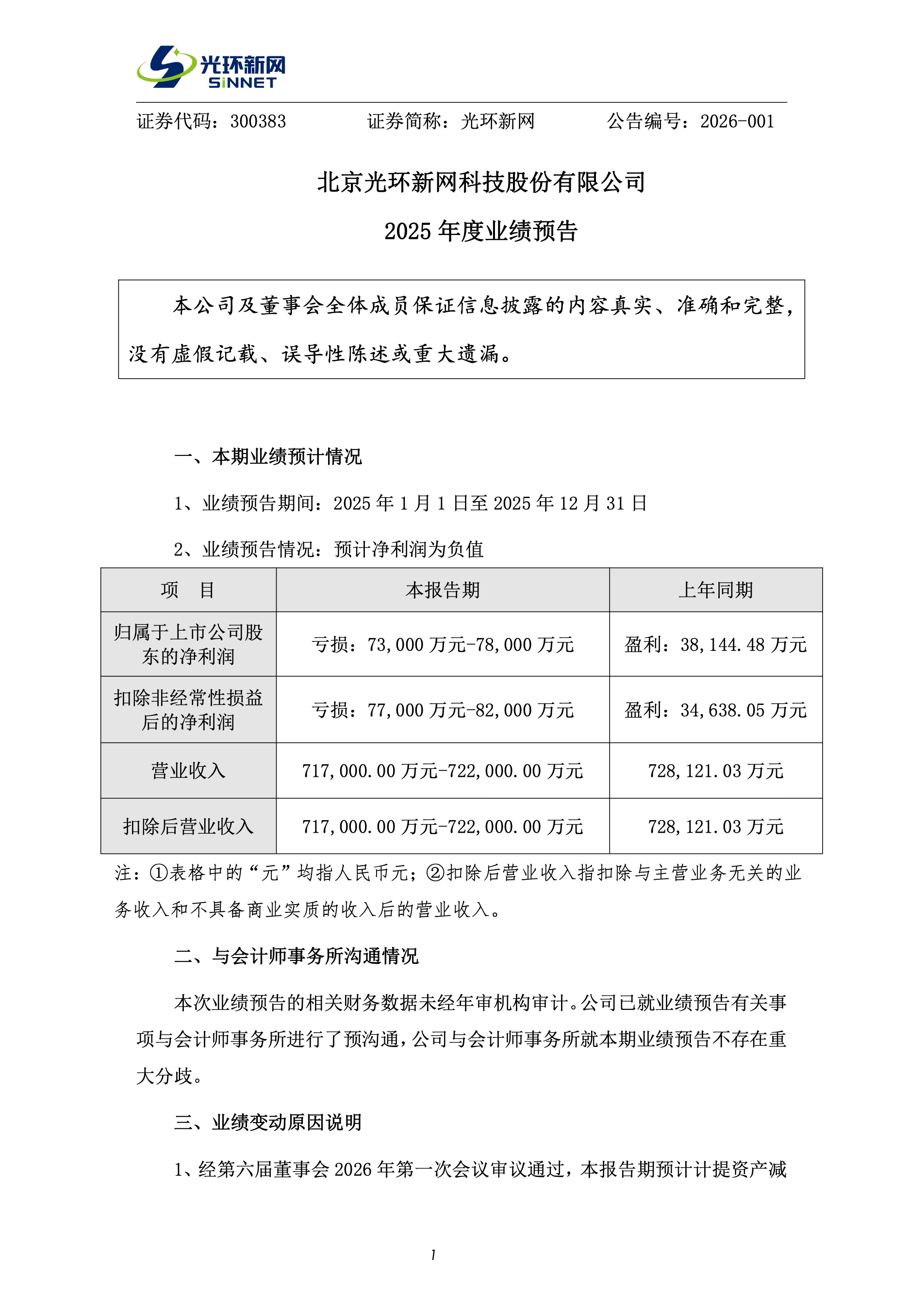 2026 年 1 月 26 日,北京光环新网科技股份有限公司发布《2025 年度业绩预告》。