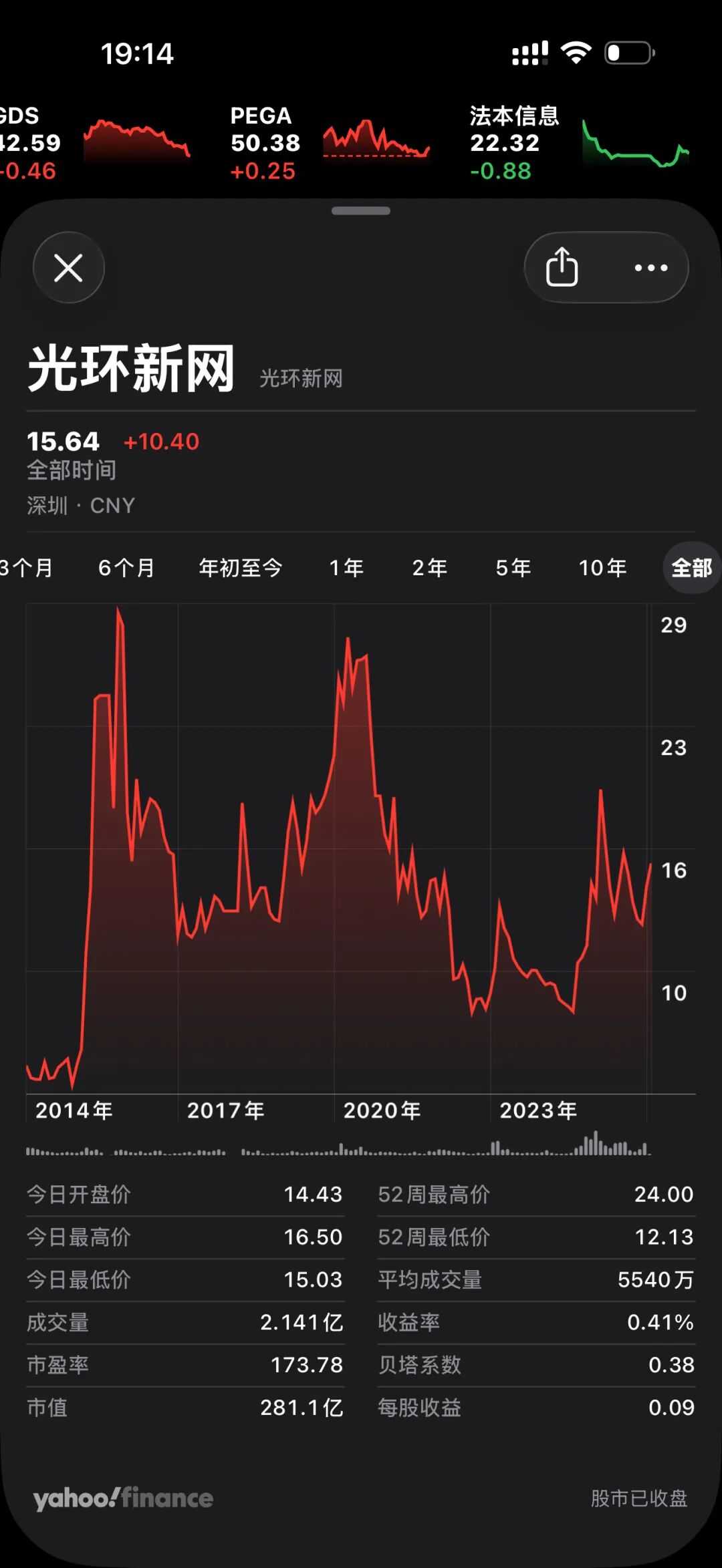 目前市值 281 亿: