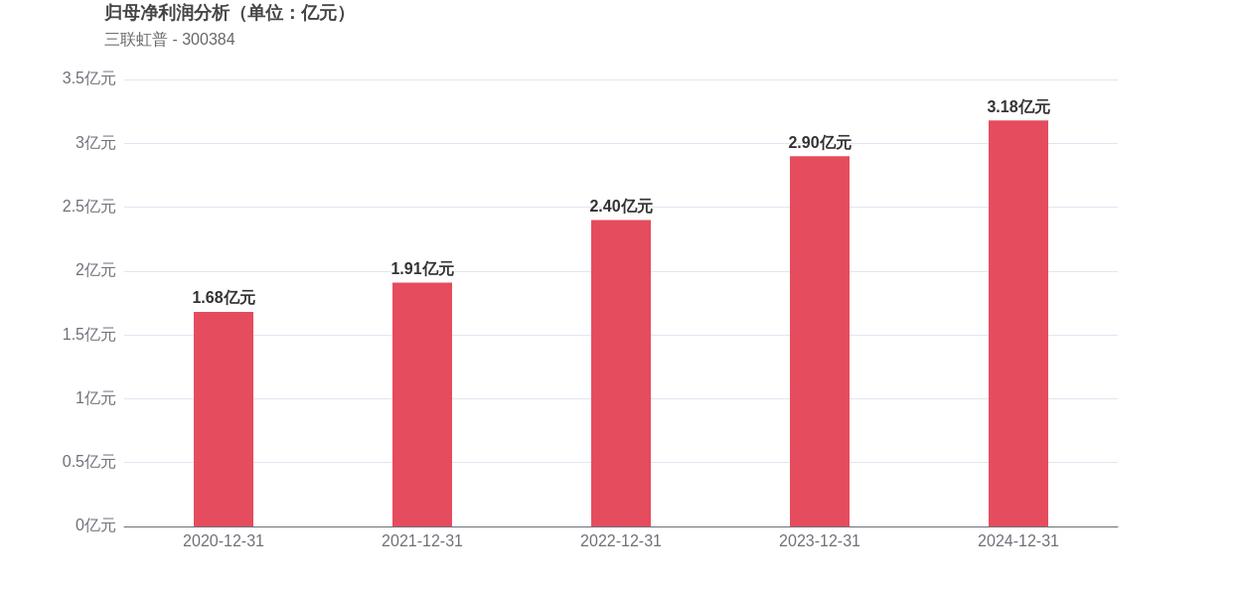 利润角度分析,2020年三联虹普实现归母净利润1.68亿元,2024年3.18亿元。公司盈利能力持续提升,除2020年外其余年份均实现正增长。