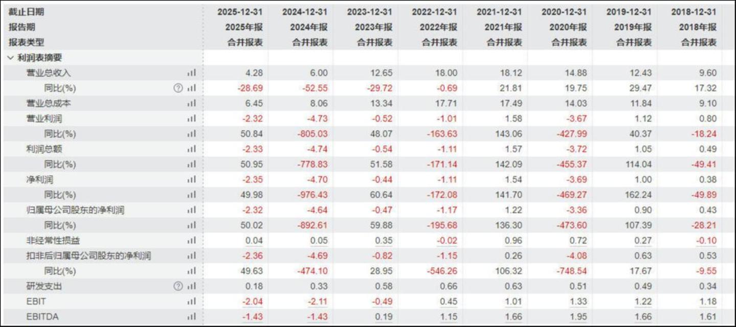 4月11日,雪浪环境发布2025年财报。公司2025年实现营收4.28亿元,同比下降28.69%;归母净利润为-2.32亿元,扣除非经常性损益后的净利润为-2.36亿元。