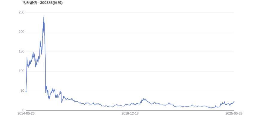 2015年6月3日,飞天诚信的市值巅峰达到232.77亿元,股价也顺应升至245.0元。而至6月25日收盘,飞天诚信的股价为22.12元,市值为92.47亿元,相比峰值时期市值减少140.30亿元,市值蒸发了60.27%。