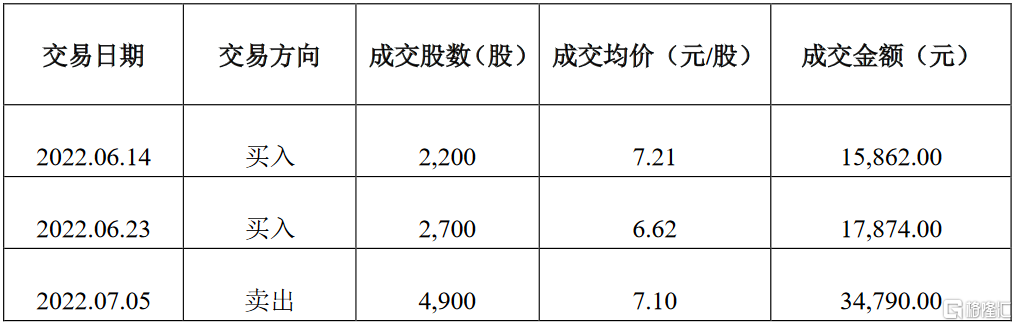 高廷泽于2022年6月14日至2022年7月5日买卖公司股票情况如下: